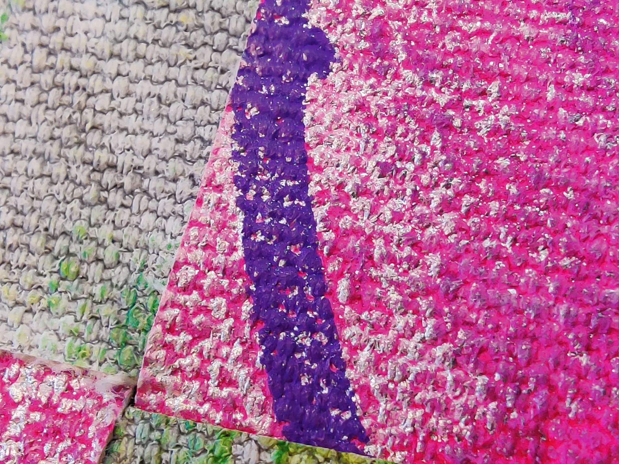 Flechtwerk aus zwei Bildern, Komplementär-Farben, Acryl auf Leinwand, Mixed Media, leuchtet im UV Licht