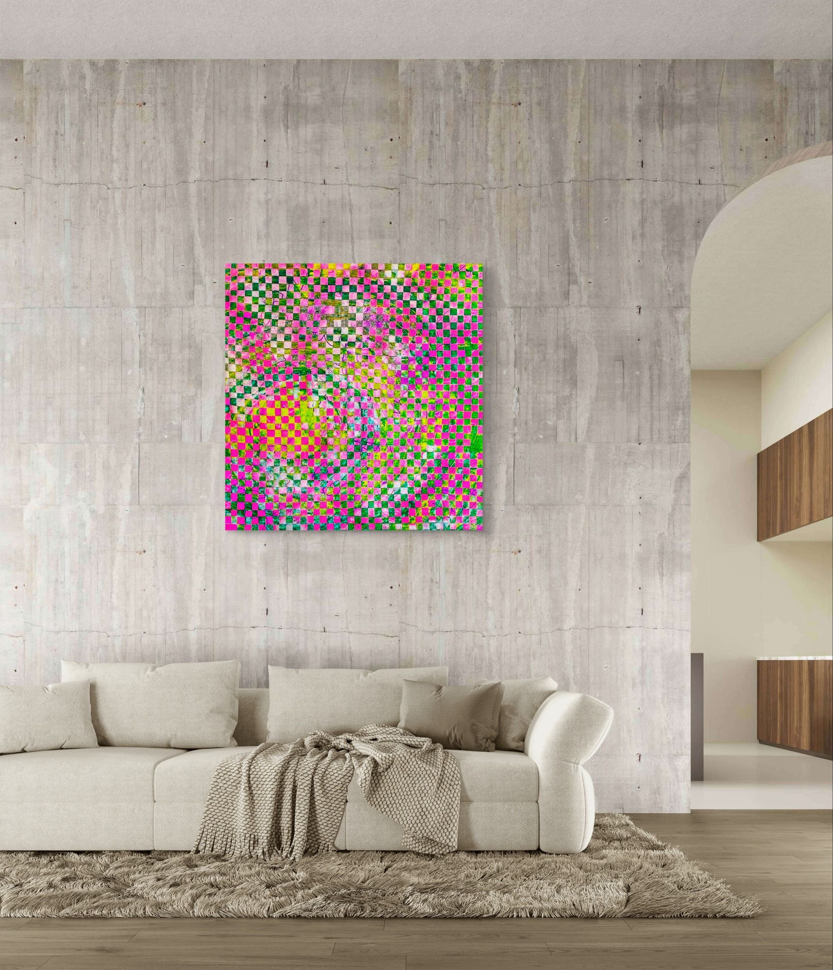 Woven in Luminescence 140*200cm, Flechtwerk, Acryl auf Leinwand