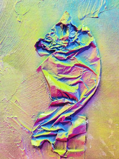 Das Seidenpapier fungiert wie ein Träger von Erinnerung oder Gedanken, die nicht mehr klar lesbar, aber auch nicht vollständig verschwunden sind.