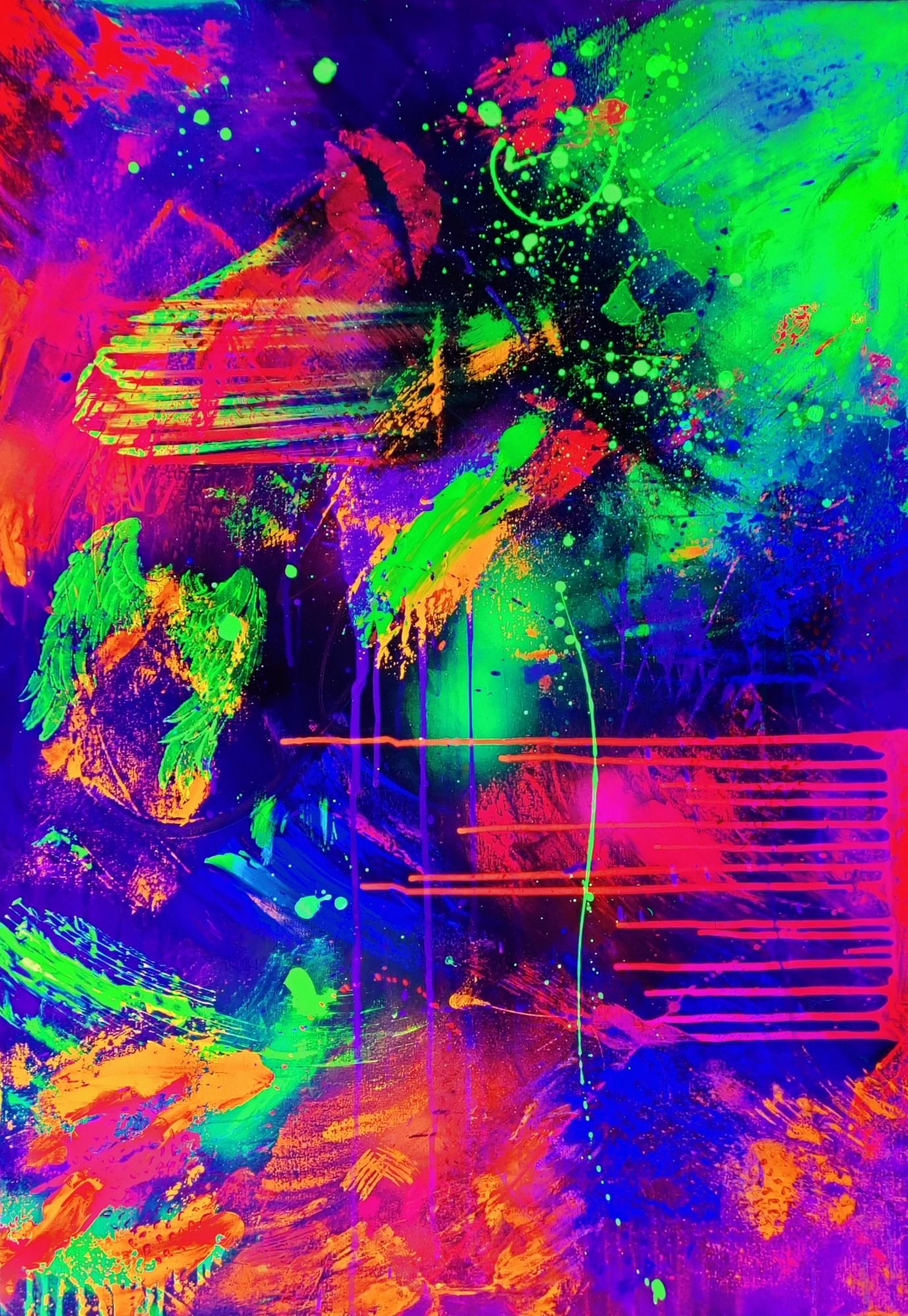 Unknown Treasure ist ein faszinierendes Kunstwerk, das den Betrachter in eine geheimnisvolle und tiefgründige Welt entführt. Die Farben des Werkes sind sowohl lebendig als auch subtil und bilden eine perfekte Balance zwischen dynamischer Energie und geheimnisvoller Ruhe. Die kräftigen, kontrastierenden Töne von Blau, Gelb und Schwarz spielen miteinander und erzeugen eine tiefe, beinahe mystische Atmosphäre. Der Einsatz von Neon verleiht dem Werk einen fast magischen, edlen Charakter, während das Blau für eine tiefe, ruhige Weite steht. Das Schwarz und die dunklen Farbtöne schaffen eine geheimnisvolle Dunkelheit, die das Bild auf subtile Weise mit Geheimnissen auflädt.